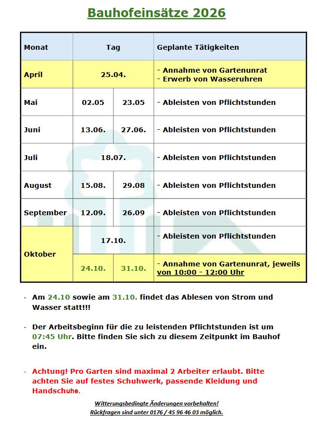 31. Januar 2026 8. Februar 2026Bauhof, Bekanntmachung Arbeitseinsatz, Arbeitseinsätze